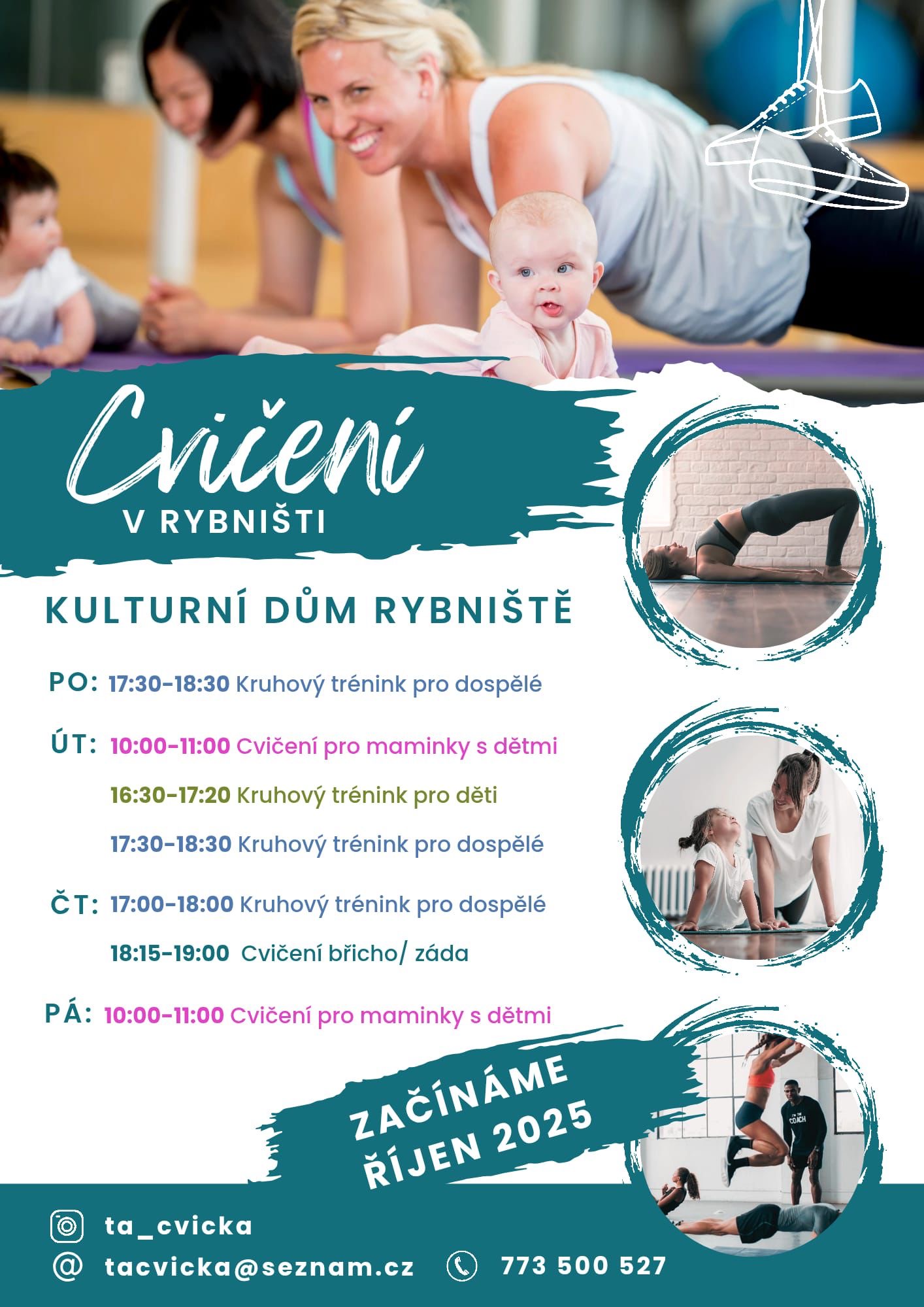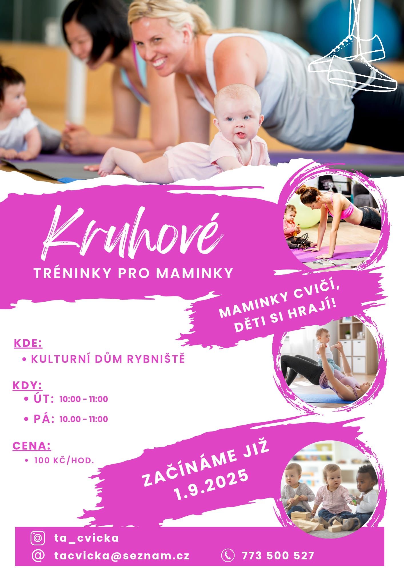 Od 1.9. mohou maminky do Rybniště opět přijet na kruhové tréninky. Ostatní lekce začnou od října. V úterý je zařazen také kruhový trénink pro děti!