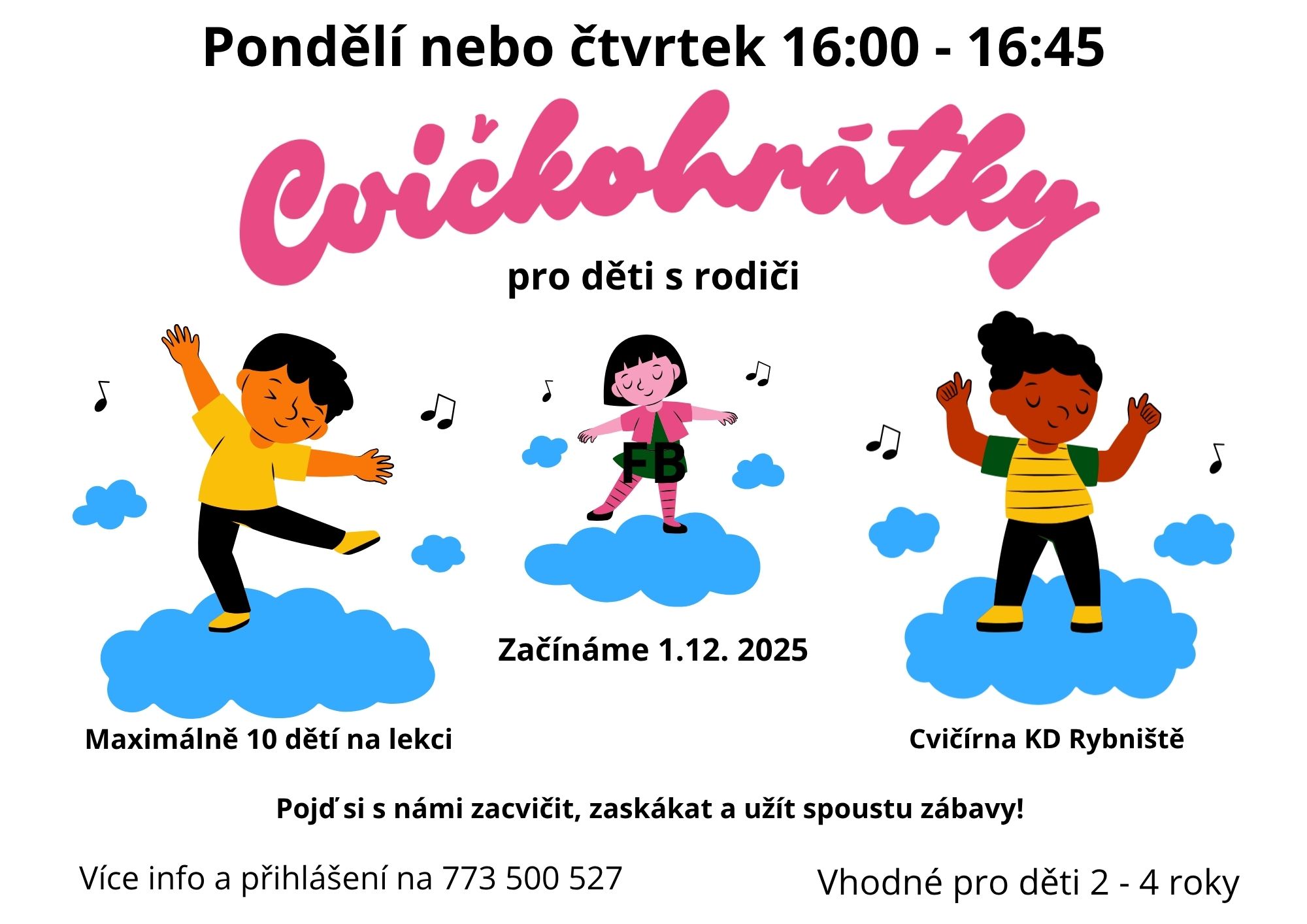 A od prosince nově v pondělí nebo čtvrtek Cvičkohrátky pro děti s rodiči.