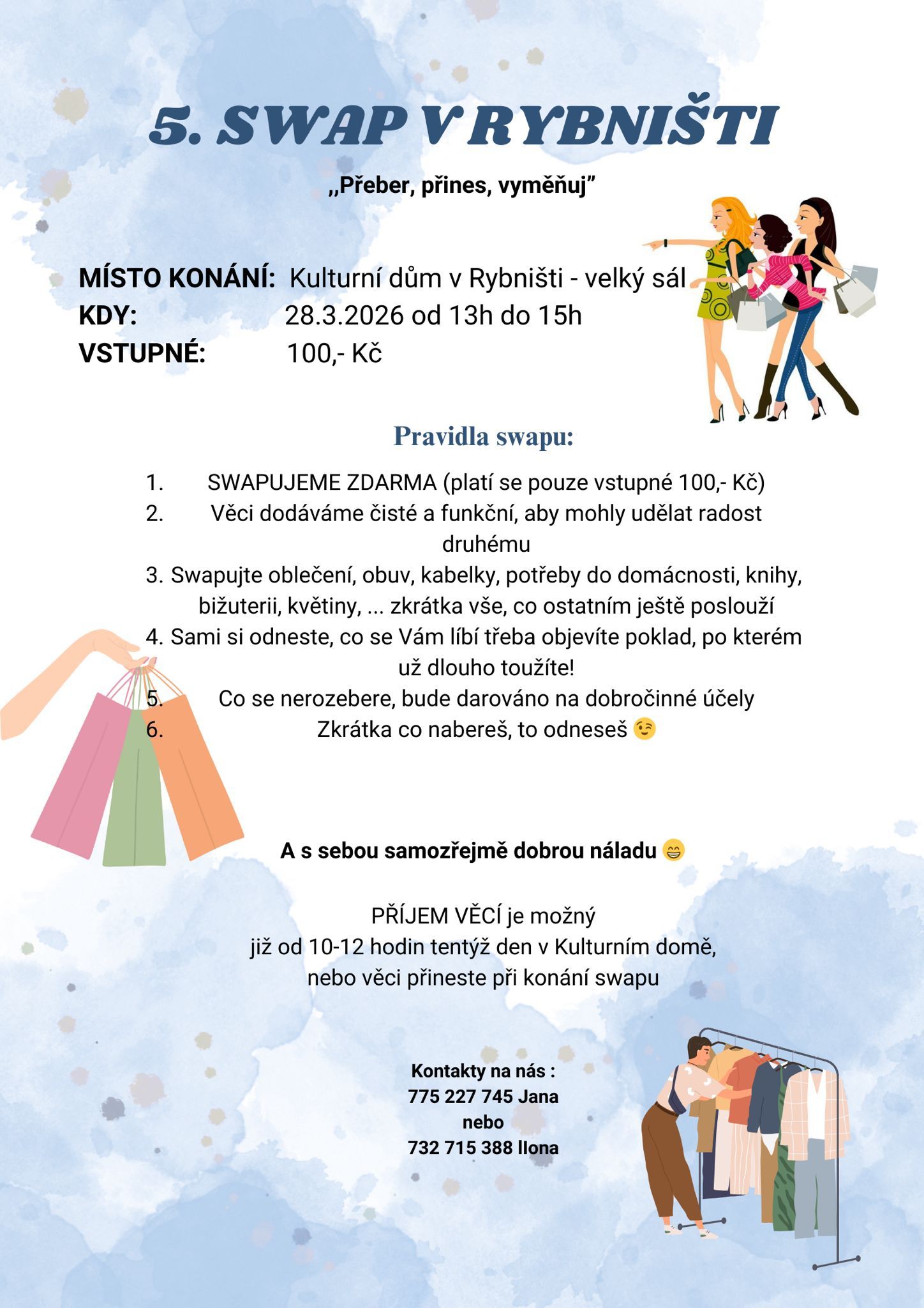 Oblíbená výměnná akce oblečení, obuvi a jiných věcí, které vám dosloužily a druhým mohou pomoci. V sobotu 28.3.2026 v kulturním domě.