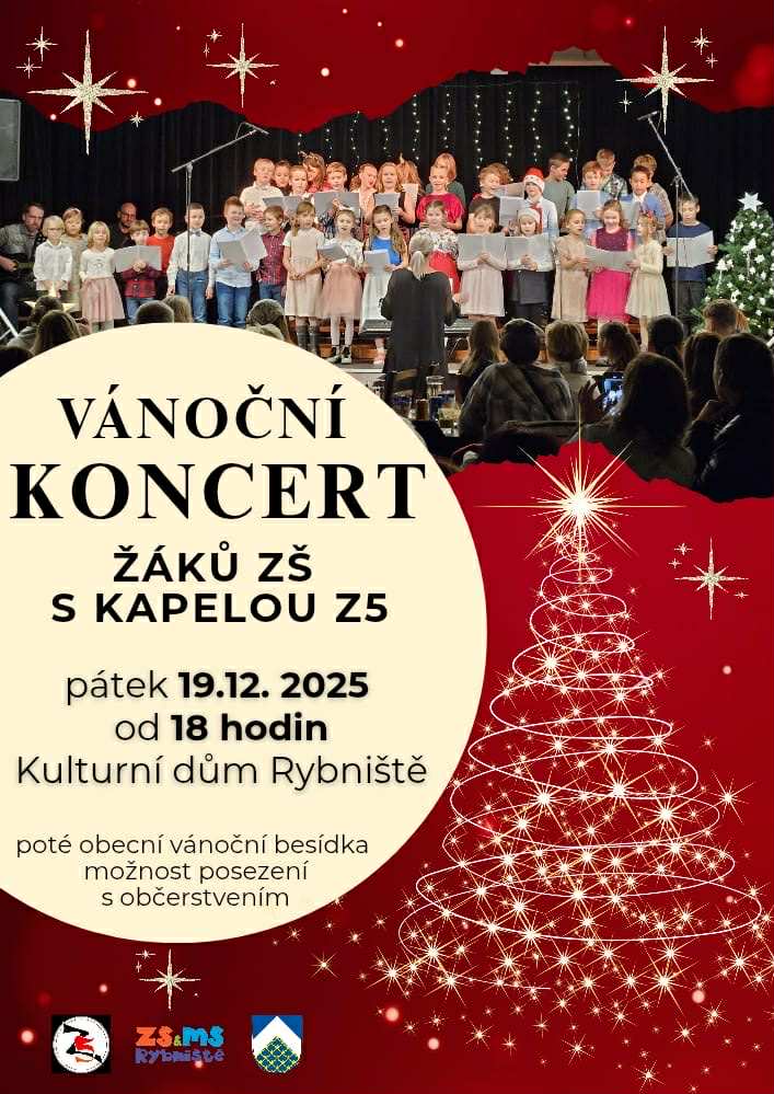 Vánoční koncert žáků ZŠ Rybniště s kapelou Z5 a poté obecní vánoční besídka v pátek 19.12. Sejdeme se od 18 hodin v kulturním domě, děti zazpívají vánoční koledy a písničky a poté můžeme pobýt pospolu.