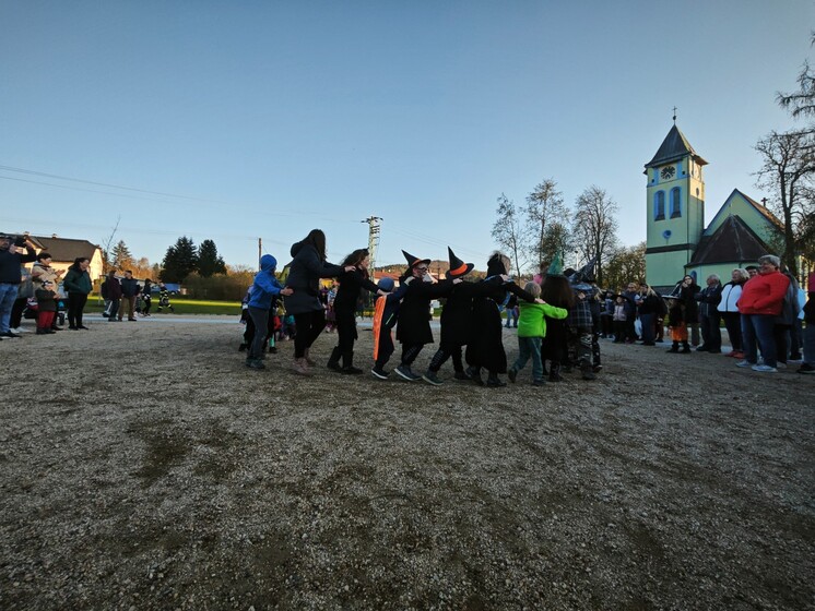Program už pak byl tradiční. Vystoupily dětičky z mateřské školy, připojily se dívky ze školy se svým představením a také družina opět rozproudila čarodějnickou náladu.