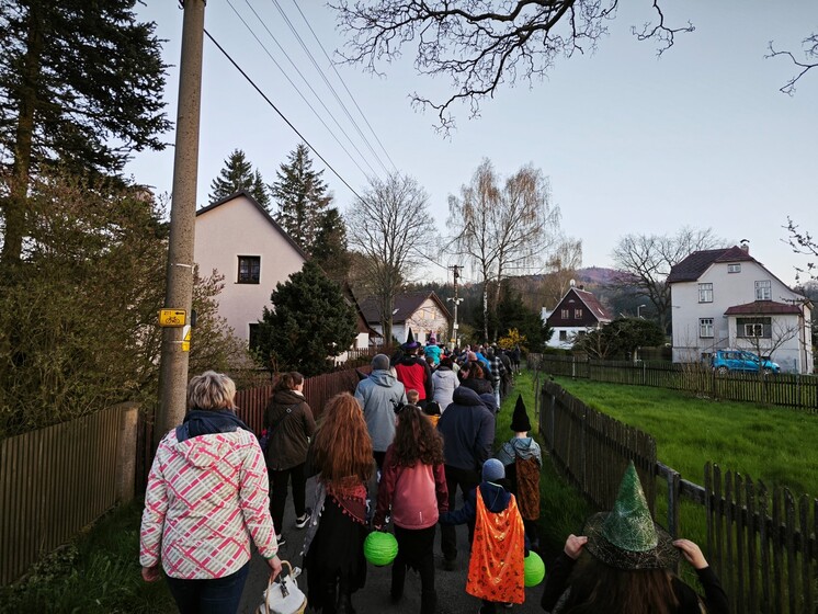 Poté se lampiónový průvod vydal novou cestou k fotbalovému hřišti, kde byla připravena vatra, ohníčky pro opečení buřtíků a otevřená klubovna, aby nevyschlo v krku.