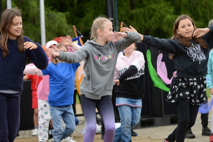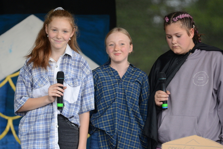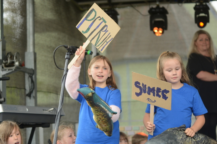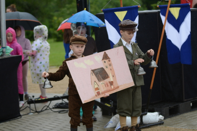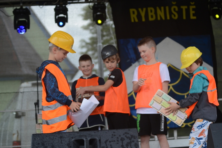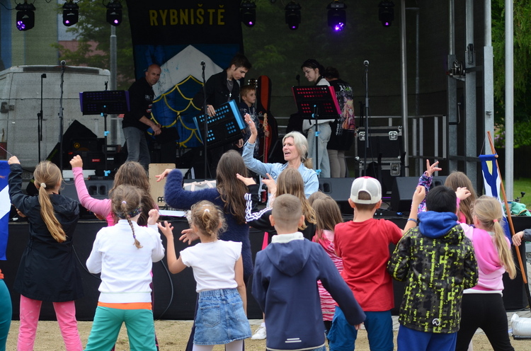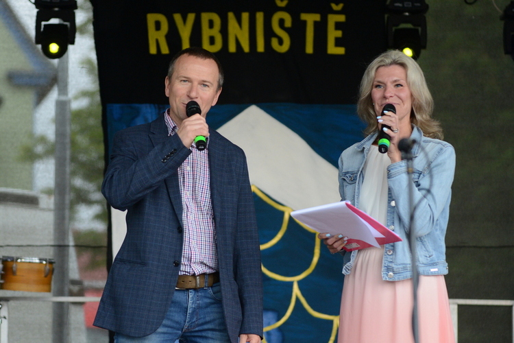 Slavnost byla zahájena originálním pojednáním o vzniku obce od bývalých žaček ZŠ Rybniště s pasováním „krále“ Romana na starostu nové obce. Ten současný Roman Forfera krátce pozdravil, aby následně moderátorka slavností Míša Doležalová slovem provedla historickými až dnešními střípky obce – s živými obrazy, ukázkou mladých hasičů a představením ZŠ a MŠ Rybniště. Školkáčci i školáci se svým vedením si účinkování na pódiu moc užili, každý se prezentoval s velkou radostí, zápalem a originálně po svém. Děti (a některé maminky taky) si pak užily animační program Divadla VeTři, plný pohybu a tance.